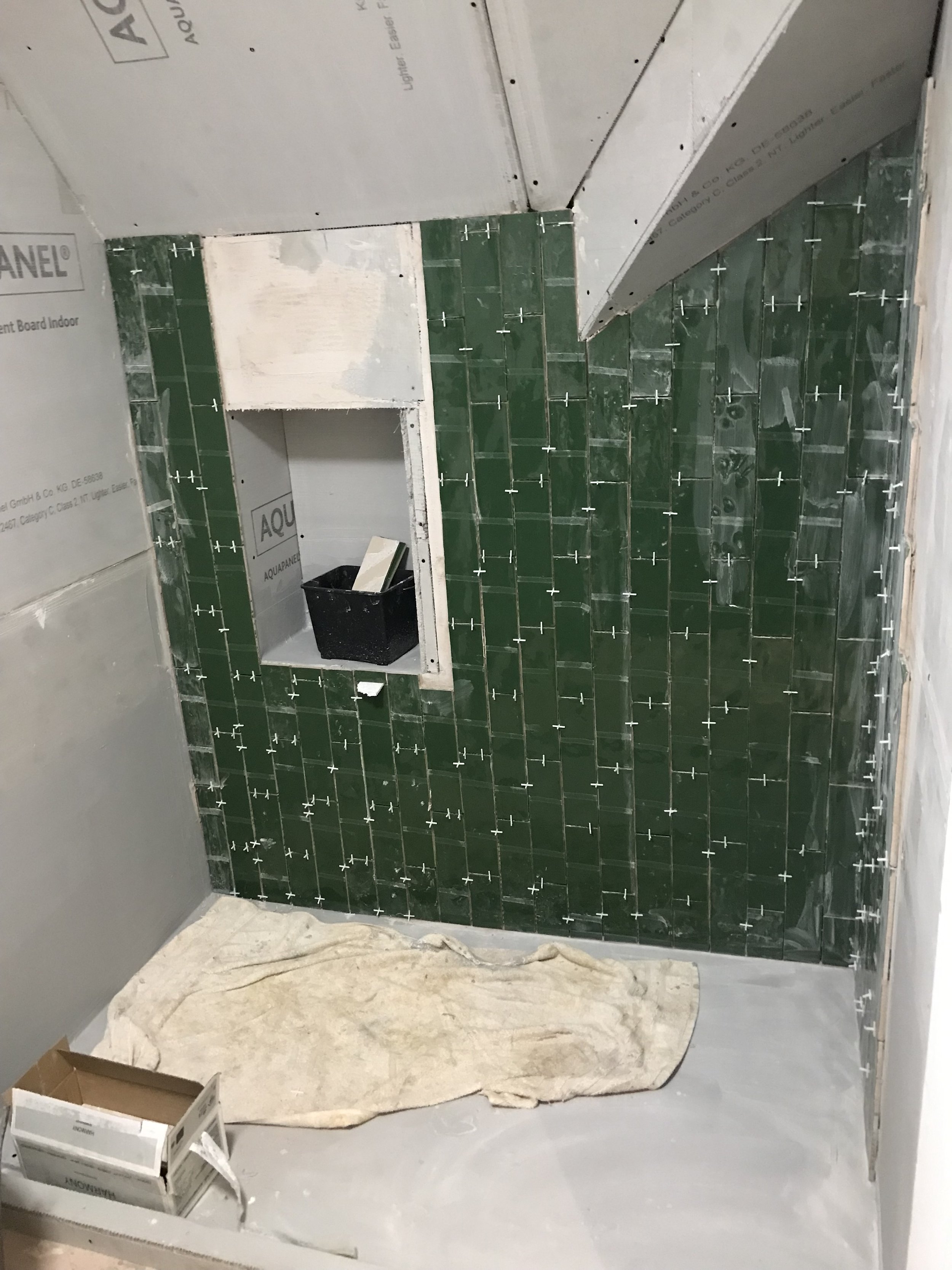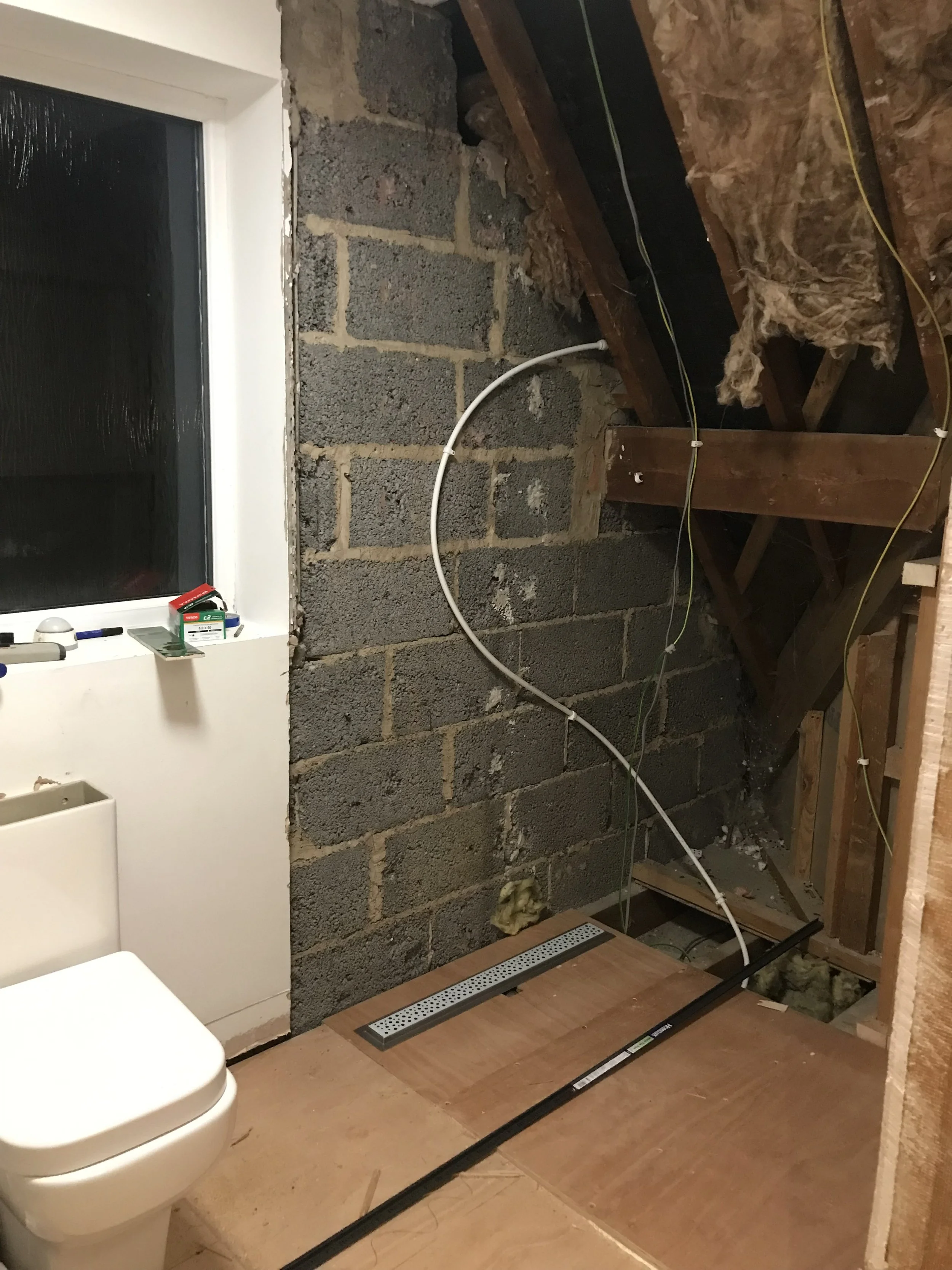The last of the current pics for this room sadly. The base of the shower has a slope to allow drainage.